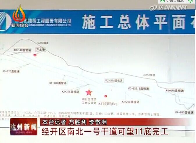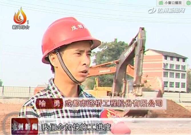 10月12日達(dá)州電視新聞綜合一臺(tái)報(bào)道達(dá)州經(jīng)開區(qū)南北一號(hào)干道工程的施工進(jìn)展情況,達(dá)州項(xiàng)目副總工喻勇接受采訪。達(dá)州經(jīng)開區(qū)南北一號(hào)干道作為經(jīng)開區(qū)的重點(diǎn)工程,自2013年12月開工建設(shè)以來,進(jìn)展順利。到目前,已完成投資1.45億,道路排水、路基已經(jīng)完成95%,路面基層完成60%,正在進(jìn)行路燈安裝、人行道路緣石、人行道磚鋪裝、交安設(shè)施設(shè)備安裝以及油面鋪筑工作。