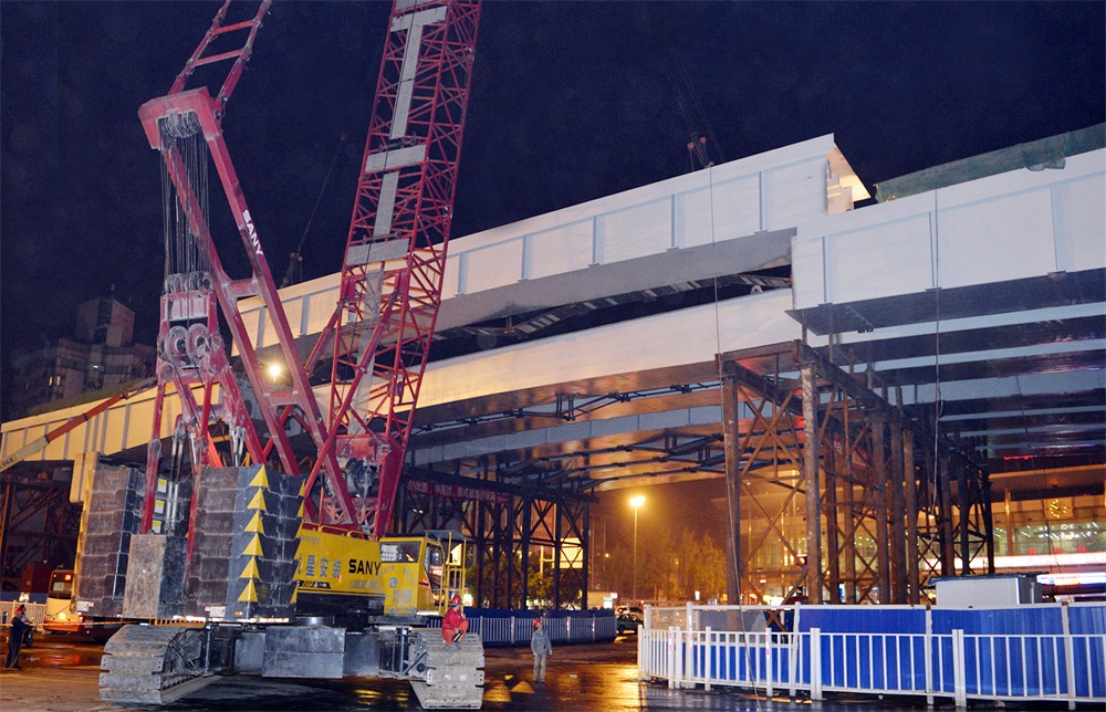 “在這種情況下搞吊裝,完全有一種‘針尖上跳舞’的感覺。”調(diào)侃歸調(diào)侃,困難還是要克服。管網(wǎng)脆弱,就用鋼板墊底;人潮涌動(dòng),就暫停施工,等人潮涌過再開始吊裝;空中有阻擋物,就去尋找其業(yè)主,與其商量,由項(xiàng)目部對(duì)阻擋物暫時(shí)進(jìn)行拆除,然后吊裝結(jié)束后再恢復(fù)……就是靠著“針尖上也要跳舞”的堅(jiān)韌,東半環(huán)EPC1標(biāo)的吊裝最終在業(yè)主單位要求的時(shí)間節(jié)點(diǎn)前兩天提前完成。