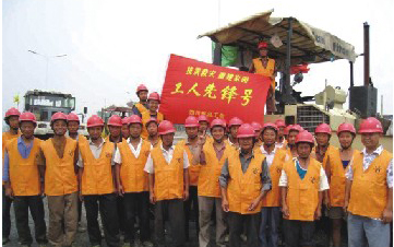 抗震救災(zāi)“工人先鋒號”施工現(xiàn)場授旗